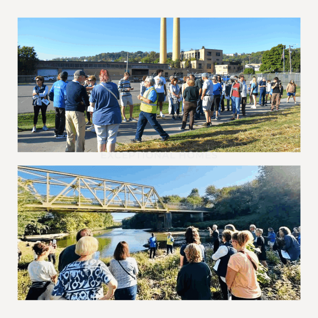 Participants explored the Mill Creek’s natural environment, took a bus tour of the built environment, and visited the Lick Run Greenway, where natural and urban landscapes converge. North Fairmount resident and Mill Creek Alliance board member Darryl Franklin shared his vision for a pocket park at the Yellow Bridge, while South Cumminsville Community Council president Derrick Feagin reflected on the neighborhood disruptions caused by I-74, pollution, and disinvestment. Tour stops highlighted community achievements, including a new pocket park, WIN-built and renovated homes, restored gardens, reclaimed industrial sites, and traffic improvements—all products of resident-led advocacy.
